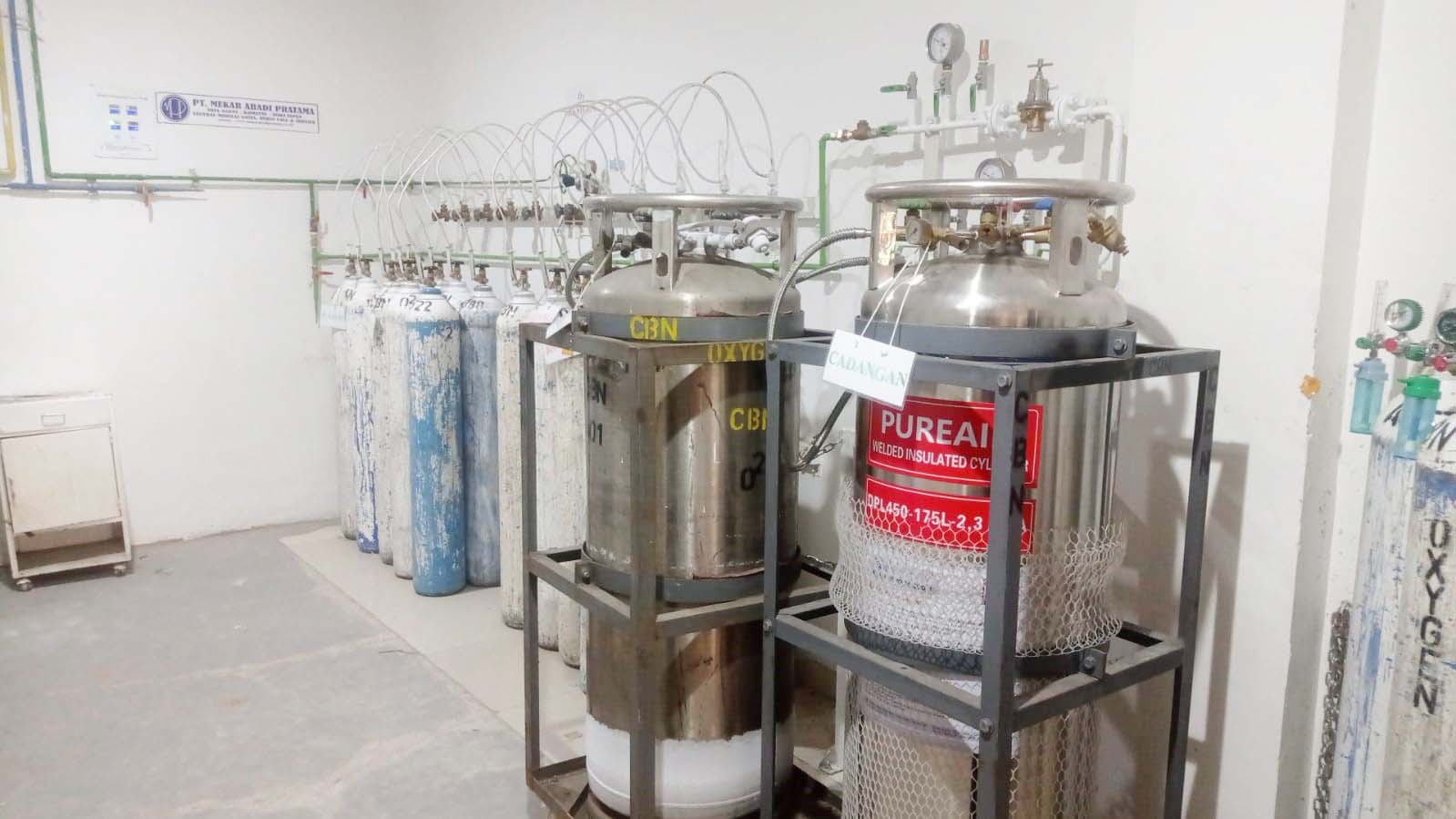 - Gas Oksigen da;am kemasan botol baja bertekaan tinggi.